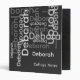 Add your own name to the template to make a seamless pattern design. Your own name repeated in different font styles... all over a dark gray background color... a nice binder to help you organizing your important notes and studies.