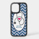 A personalized otterbox phone case with an oval frame and inside is a gray stethoscope, a red heart and a personalized name. Set on a blue chevron pattern with faux glitter. No real glitter, it's just an image of glitter.