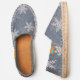 This chic and elegant design with a light textured snowflake winter background pattern is perfect for the holiday season. The illustration featuring a layered and elegant white snowflake pattern on a light gray background lends a glam touch to the footwear. The background color can be changed to customize your pair of Espadrilles.