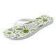 Cool bright green and white flip-flops featuring a jungle leaf pattern.