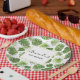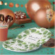 Party paper plates with a pretty pattern made up of green tropical leaves. Exotic and stylish design.