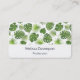 Business cards with a pretty pattern made up of green tropical leaves. Exotic and stylish design.