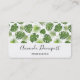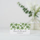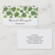 Business cards with a pretty pattern made up of green tropical leaves. Exotic and stylish design.