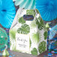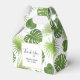 A tiny favor box with a pretty pattern made up of green tropical leaves. Exotic and stylish design.