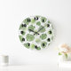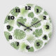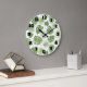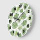 A clock with a pretty pattern made up of green tropical leaves. Exotic and stylish design.