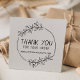 A stylish hand drawn greenery wreath with modern typography "thank you for your order" with website address rubber address.