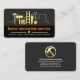 A grey and black layer is accentuated by a gold handyman tools design that has an underlying rooftop layer. The handyman tools represent some of the work that you might offer i.e. the hammer for home repairs, the roller brush and ladder for painting, the measuring tape and saw for carpentry and the spade for landscaping. Each description is left to your own definition. Just below this tools motif, in the black layer, is the ovresize business name with a list of possible services near the base. ; You can change this to suit your own service needs.