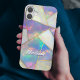 A Stylish holographic agate gemstone geometric iPhone 16 Case. With a soft, prism-like pattern of geometric shapes, this case combines subtle iridescent hues of purple, blue, and gold. The abstract grid structure creates an illusion of depth, making the case feel like a luxurious, light-reflecting gem on your iPhone. Show off your personal style, look fashionable, trendy and feel stylish around your friends with a unique design on your iPhone or customize it over another product of your choice.