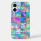 Stylish holographic trendy faux gold square geometric iPhone 16 Case. With an arrangement of geometric squares in holographic hues, this iPhone case has an elegant, shifting spectrum of colors. The abstract pattern includes subtle gradients of teal, lavender, and blue, creating a beautiful, tile-like effect that feels both modern and luxurious..