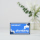 Cover features a white leaking pipe faucet border frame that is encapsulated by an outer dark blue layer. Over at the upper left corner is your prestigious name with the oversize business name "plumbing" near the base alongside a caption option; Change the captions to both these items to suit your own service needs.
