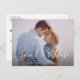 An simple script wedding save the date card design with stylish white script lettering. Feel free to personalize the image and text.