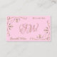 Stylish Light Pink Golden Ornate Corners Initials Business Card