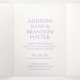 Elegant wedding tri-fold invitation featuring a classic design with a simple layout. Your names and wedding date are prominently displayed in a large traditional serif font. The simplicity of this design is great for a formal wedding.