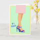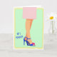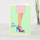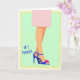 This card shows a minimalist fashion-style illustration of a woman’s lower legs crossed with an elegant, relaxed pose that feels quietly affectionate ❤️. One foot stands out in a cobalt blue high-heeled sandal with a slim ankle strap, drawing the eye like a special detail someone would notice on a loved one. A fuchsia flower accent sits on the toe strap, adding a flirty, friendly touch against the cool blue. Above the calves, a light pink hem suggests a skirt or dress, keeping the look soft and polished. The background is a gentle mint green, creating a calm setting that makes the brighter colors stand out. On the left side, the text “#1 MAMA” appears in blue lettering, placed vertically near the legs for balance 🌼. A pale yellow, slightly uneven border frames the whole scene like a loose sketch line around the edges.