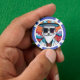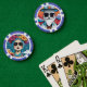 This poker chip design is made of a colorful illustration of a fashionable man with white beard, rectangle sunglasses and cylinder hat. This is a great poker chip design for people who value their style!
