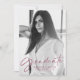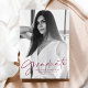 Modern graduation announcement featuring the graduate's vertical photo with "Graduate" in a stylish maroon script overlay. Personalize the front of the photo graduation announcement by adding the graduate's name, school name, and graduation year. The back of the trendy graduation announcement features a hand-drawn maroon and white pattern.