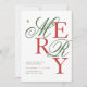 Celebrate the season in style with this elegant Christmas party invitation featuring bold red and green “MERRY” typography in a mix of classic script and modern lettering. Perfect for holiday gatherings, office parties, or family celebrations, this festive design adds a touch of sophistication while keeping the holiday spirit bright and cheerful. Easily personalize with your party details for a warm and stylish holiday invitation.