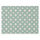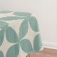 This stylish tablecloth features a simple mid century modern pattern of shapes in sage green and cream.