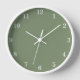 Stylish Minimalist Sage Green Wall Clock, an attractive wall clock featuring stylish white numbers on a plain sage green background.