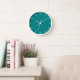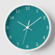 Stylish Minimalist Teal Wall Clock, an attractive wall clock featuring stylish white numbers on a plain teal color background.