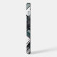 This stylish modern cell phone cover features a minimalist and abstract design with a palette of muted greens, black, and white. The cover is characterized by broad, intersecting shapes and bold vertical lines that create a sense of structure and modernity. The varying thicknesses of the lines add depth and dimension, giving the design a dynamic yet restrained look. Your name appears twice in a white serif font, positioned at an angle and vertically, adding a personalized and elegant touch to the composition. Replace the names or delete them. The art style combines elements of abstract expressionism and modern graphic design, focusing on simplicity, balance, and a subtle interplay of form and color.