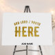 The sign I ordered for my daughter's engagement party was perfect! It arrived exactly as described and ready to place on the easel. It was delivered on time. The printing was clear and the colors were very pretty, just like it was advertised online.