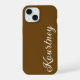 STYLISH MODERN ELEGANT CUSTOMIZED NAME DARK BROWN COLOUR iPhone 15 CASE