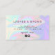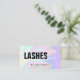 Gorgeous lashes & brows business card design featuring colorful faux holographic texture and elegant calligraphy font.