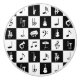 A great gift for any musician or music lover, this cool design features a modern and stylish black and white check squares pattern with various musical notes and musical instruments in alternating colors. It includes pianos, trumpets, drums and saxophones with music notes and treble clefs.