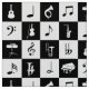 A great gift for any musician or music lover, this cool design features a modern and stylish black and white check squares pattern with various musical notes and musical instruments in alternating colors. It includes pianos, trumpets, drums and saxophones with music notes and treble clefs.