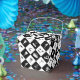 A great gift for any musician or music lover, this cool design features a modern and stylish black and white check squares pattern with various musical notes and musical instruments in alternating colors. It includes pianos, trumpets, drums and saxophones with music notes and treble clefs.
