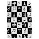 A great gift for any musician or music lover, this cool design features a modern and stylish black and white check squares pattern with various musical notes and musical instruments in alternating colors. It includes pianos, trumpets, drums and saxophones with music notes and treble clefs.