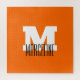 Stylish Large White Initial and Trendy Black Vintage Name | Neon Sunset Orange Color