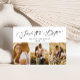 This elegant save the date features 3 photos with graceful modern calligraphy script. Add additional details to the back.