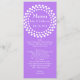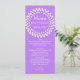 Long and skinny wedding table menu done in violet purple, with a white dotted circle, at the top. Personalize all the white text to suit your wedding reception menu. Lovely addition to your wedding reception.