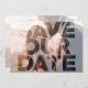 Your photo with a SAVE OUR DATE transparent overlay on the front and your details on the back with a new or the same photo. Use the Customize further link and using our editing tools to make changes. Choose High-Definition printing option for better photo quality and Matte for heavier paper.