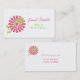 Stylish custom mommy calling card done in a white card stock, with a big trendy pink and light green double flower, on the left side. Personalize all the text, on the front and back, to suit your needs. Great for arranging play dates with other moms.