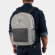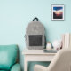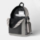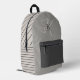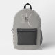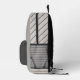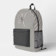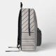 A neutral taupe, beige and charcoal gray pattern with stripes and solids, this backpack is a tasteful choice for school, office, travel and more. A stylish and unique monogram design displays the initial of your first name in both a simple serif font and an elegant calligraphy font in the background. Your name is displayed below your monogram initial in this unique typography custom design. The three elements blend together with a sophisticated harmony and create your own personal branding logo. Personalize with your name and monogram.