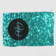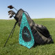 A golf towel with a classic and elegant monogram in aqua on a stylish black circle together with faux aqua glitter.