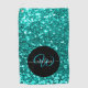 Stylish monogram aqua glitter name black golf towel
