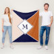 Stylish MONOGRAM Geometric | Navy Tan Cream Fleece Blanket