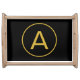 Stylish Monogram Initial Letter Gold Color Black Serving Tray