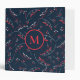 Stylish monogram red dark blue berry pattern 3 ring binder