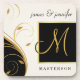 Elegant ecru, black and gold abstract floral design with classy, contemporary monogram initial -- Customize the names of the Bride and Groom to create your own truly unique and personalized gift that the happy newlyweds will treasure forever. Also makes a great gift for happily married 50th, 40th, 60th, 30th and 25th Anniversary couples.