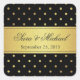 Stylish Monogrammed - Black and Gold Polka Dots Square Sticker