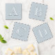 Add UP to FOUR INDIVIDUAL custom monogrammed initials to trendy updated soft blue decorative coaster set! Everyone can have their own initial! Set is soft light blue grey with white shadowed font. Choose up to four different letters or make all four the same letter. Makes a great hostess gift housewarming! Background color and font colors are easily customized in the design section. E-mail beachpausedesigns@gmail.com if you have any questions about this or any of our design options.