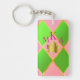 Stylish Monogrammed Pink and Green Argyle Keychain