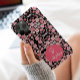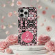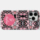 Stylish Monogrammed Pink Floral Pattern on Black Case-Mate iPhone Case