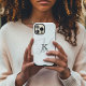 Stylish and beautiful, this unique monogram iPhone case design displays the initial of your first name in both a simple serif font and an elegant calligraphy font in the background. Your name is displayed below your monogram initial in this unique typography custom design. The three elements blend together with a sophisticated harmony and create your own personal branding logo. Shown here with a clean white background with monogram elements in neutral beige and dark charcoal gray.