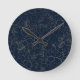 Stylish navy blue gold hand drawn floral round clock
